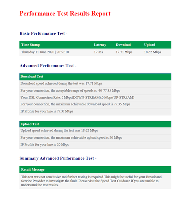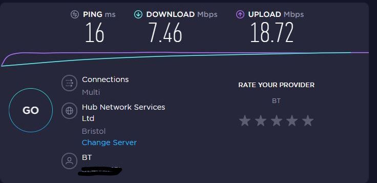 I did however manage to run a speed test on the mybt app and results are as below along with results for various other speed results sites.